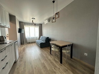 Развитая инфраструктура, школа, садик, магазин Магнит, другие магазины и кафе. До моря 20 минут.Благоустроенный подъезд, видеонаблюдение,два лифта.
