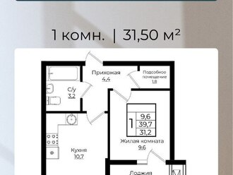 1-к. квартира 31.5 кв.м, 7/10
