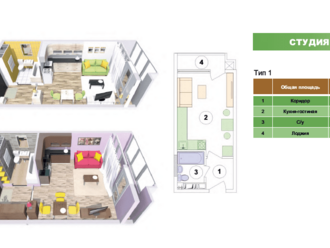 Студия светлая, с продуманной планировкой.